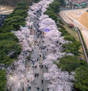 - 위치: 렛츠런파크 서울 벚꽃길 (황금마상-벚꽃길-실내마장-88승마장-포니랜드)
